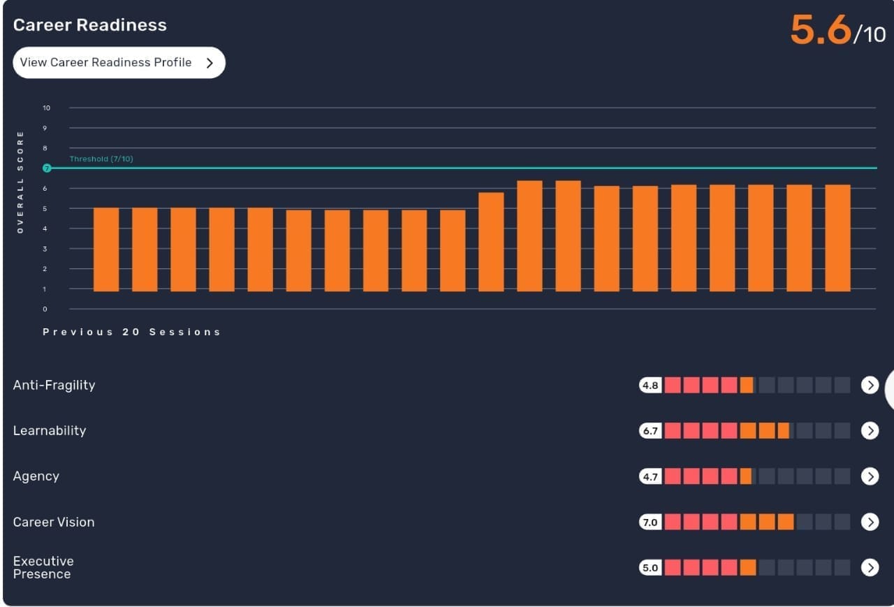 Aim for a threshold score of 7 to become fully career-ready and interview-confident.